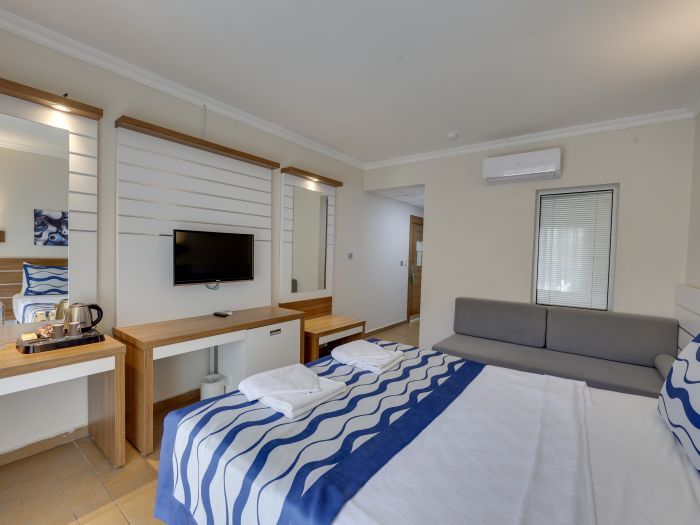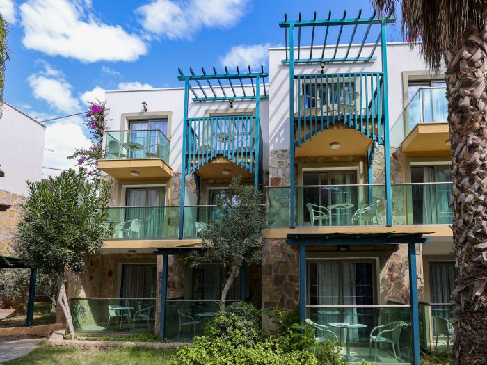 Намира се на 37 км от летище Бодрум, на 3 км от центъра на Бодрум, район Гюмбет, на 20 м от брега на морето (пресича се улица). Построен 1995 г., на обща площ от 13 200 м². Частично реновиран 2014 г.