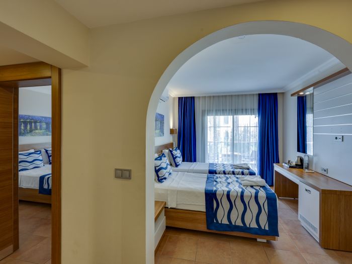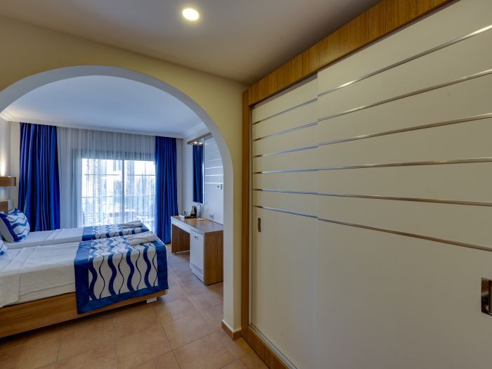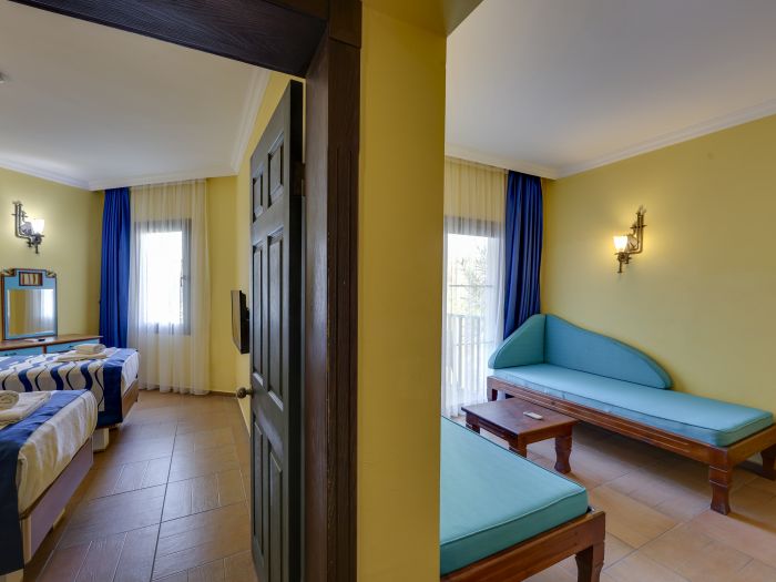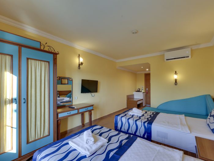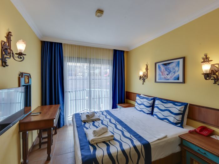 Хотелът разполага с общо 274 стаи, разположени в 3-етажни сгради, от които 33 Club room (нереновирани стаи - 26 м²),178 Hotel room (реновирани стаи, разположени в основен корпус или в триетажни сгради - 26 м²), 28 Club family room (нереновирани стаи, 2 спални, 1 баня - 45 м²) , 35 Family hotel room (реновирани стаи, 2 спални, 1 баня - 45 м²), Disabled Room (пригодени за хора с ограничена подвижност - 26 м²).