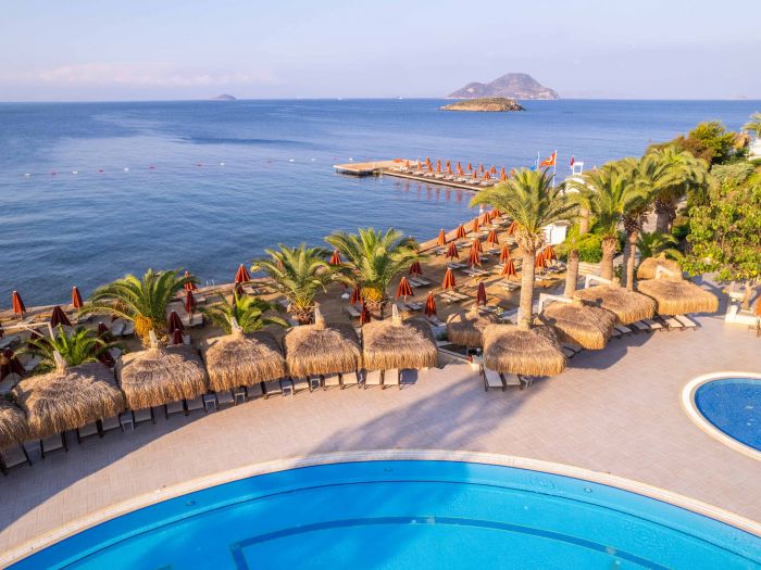 Хотелът се намира на 50 км. от летище Милас, на 18 км. от центъра на Бодрум, на 3 км. от центъра на Тургутрейс, на брега на морето. Построен е през 1989 г., с обща площ от 36 000 м2., частична реновация през 2017 г.
