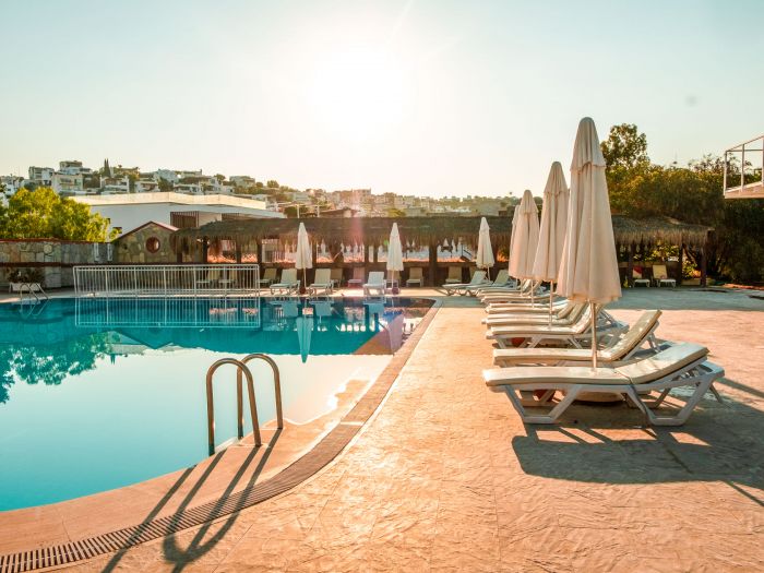 Намира се на 37 км от летище Бодрум, на 3 км от центъра на Бодрум, в района на Гюмбет, на брега на морето. Построен 1994 г. Реновиран 2015 г.