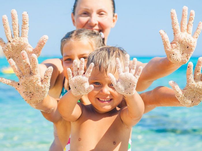 Собствен, пясъчно - чакълест. Чадъри, шезлонги и плажни кърпи на плажа и при басейна – безплатно.