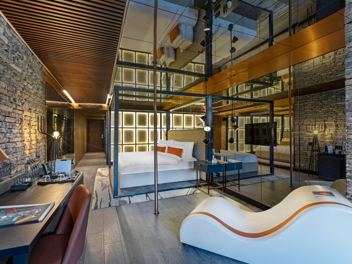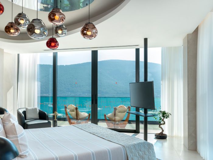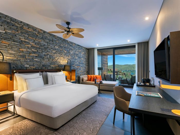 Стаи: Superior Room Side Sea View (спалня със зона за сядане, баня, страничен изглед море - 45 м²), Indigo Clubber Terrace Room (1 спалня, 1 баня, тераса с шезлонг, вана на терасата, стая само за възрастни – 42-70 м²), Superior Room Sea View (спалня със зона за сядане, баня, изглед море - 45 м²), Indigo Laguna Clubber Room (1 спалня, 1 баня, тераса с шезлонг, директен достъп до общ басейн, стая само за възрастни – 50 м²), Terrace room sea side view (1 спалня, 1 баня, тераса с шезлонг, джакузи на терасата – 50 м²), Deluxe Sea Side View (спалня със зона за сядане, 1 баня, гардеробна, тераса – 55 м²), Superior Laguna room (спалня със зона за сядане, 1 баня, гардеробна, директен достъп до общ басейн, – 60 м²), Terrace Room Sea View (спалня със зона за сядане, 1 баня, гардеробна, тераса с шезлонг, джакузи на терасата – 50 м²), Deluxe Room Sea View (спалня със зона за сядане, 1 баня, гардеробна, тераса, изглед море – 55 м²), Laguna Deluxe Room Partly Sea View Swim up (спалня със зона за сядане, баня, гардеробна, директен достъп до общ басейн, частичен изглед море – 60 м²), Laguna Deluxe Room Land View (спалня със зона за сядане, баня, гардеробна, директен достъп до общ басейн, изглед суша - 60 м²), Laguna Deluxe Room Sea View Swim up (спалня със зона за сядане, баня, гардеробна, директен достъп до общ басейн, изглед море - 60 м²), Family room (1 спалня със зона за сядане, 1 спалня с отделни легла, 1 баня, гардеробна, тераса, възможност за изглед – море, частичен изглед море, изглед суша – 65 м²). Суитове: Family Corner Suite (2 спалня, 1 хол, 2 бани, 2 гардеробни, тераса – 95 м²), Family Corner Terrace (2 спалня, 1 хол, 2 бани, 2 гардеробни, тераса с джакузи – 95 м²), Laguna Duplex Family Suit (3 спални със зона за сядане, 3 бани с гардеробно помещение, 1 тераса с джакузи, 1 тераса с директен достъп до общ басейн - 140 м²).