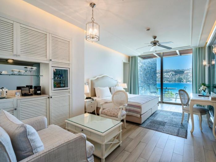 Стаи Deluxe King & Twin Land View (1 спалня или 2 единични легла, зона за сядане, 1 баня, тераса, изглед суша - 37 м²), Deluxe King & Twin Sea View (1 спалня или 2 единични легла, зона за сядане, 1 баня, тераса, с изглед море - 37 м²), Premium Queen Land View (1 спалня или 2 единични легла, зона за сядане, гардеробна, 1 баня, с изглед суша и тераса - 55 м²), Premium Queen Sea View (1 спалня или 2 единични легла, зона за сядане, гардеробна, 1 баня, с изглед море и тераса - 55 м²), Exclusive Suite With Living Room Land View (1 спалня, зона за сядане, гардеробна, 2 бани, с изглед суша и тераса - 64 м²), Exclusive Suite With Living Room Sea View (1 спалня, зона за сядане, гардеробна, 2 бани, с изглед море и тераса - 64 м²), Premium Family Connection Room With Land View (2 спални, гардеробна, 1 баня, с изглед суша и тераса - 64 м²), Premium Family Connection Room With Sea View (2 спални, 1 гардеробна, 1 баня, с изглед море и тераса - 64 м²).
