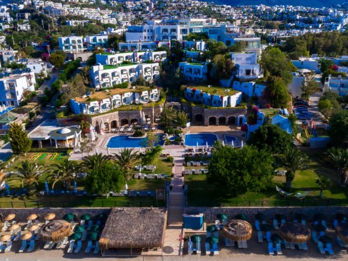 Намира се на 35 км от летище Бодрум, на 3 км от центъра на Бодрум, в района на Гюмбет, на брега на морето. Построен 2006 г., на обща площ от 16 000 м². Частично реновиран 2018 г.