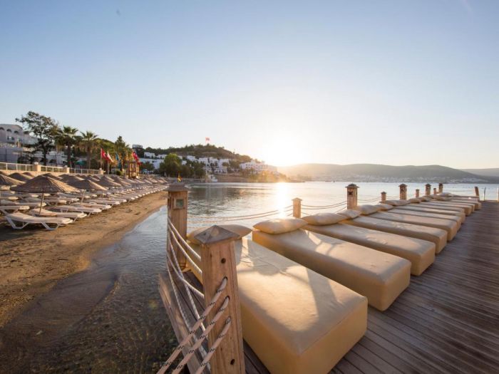 Хотелът се намира на 35 км от летище Милас, на 1 км от центъра на Бодрум, в района на Бардакчъ, на брега на морето. Разполага с обща площ от 22 000 m².