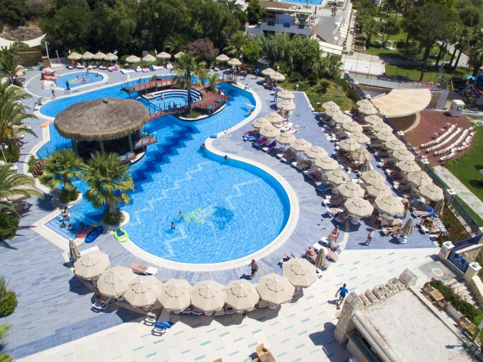Хотелът разполага общо с 212 стаи, разположени в шест 3-етажни сгради - 107 Standard Room Sea View (25 m²), 76 Standard Room Garden View (25 m²), 15 Family Room Sea View (40 m², 10 Family Room Sea View (40 m²), 1 Junior Suite (75 m²), 2 King Suite (94 m²). Обзаведени са в отомански стил.