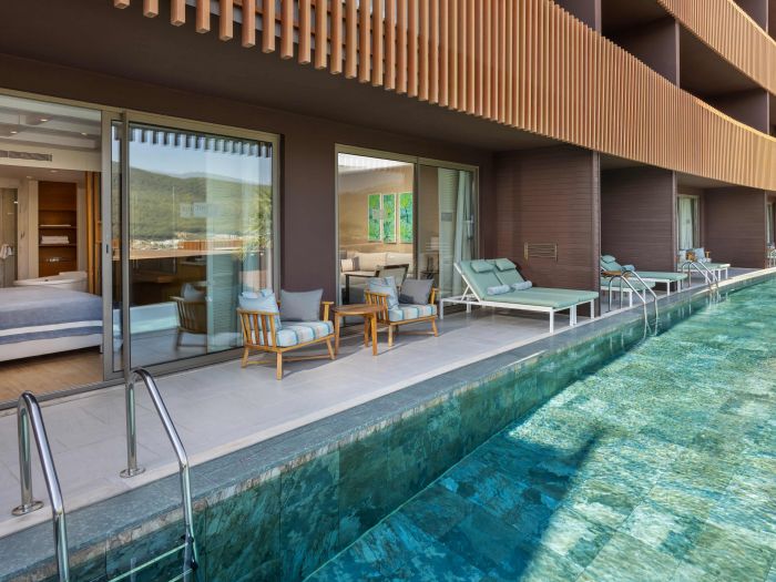 Намира се на 15 км от летище Бодрум, на 25 км от центъра на Бодрум, в района на Гюверджинлик, на брега на морето. Построен 2016 г., на обща площ от 80 000 м². Реновиран 2023 г.