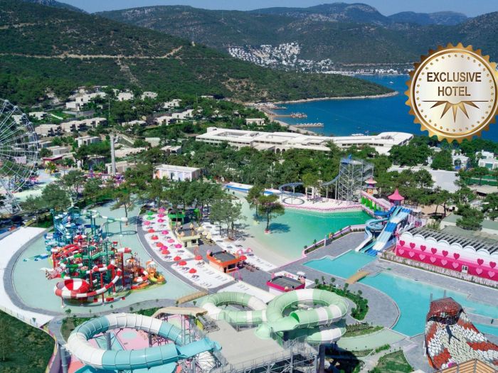 Хотелът се намира на 27 км от летище Милас, на 6 км от центъра на Бодрум, в района на Торба. Разположен е в живописен залив, на брега на морето, заобиколен e от борови дървета и красива градина. Построен през 2013 г. с обща площ от 400 000 м², последнa реновация през 2022/3 г. Построени са нови атракциони за децата, сред които нов тематичен парк Candyland и уникално виенско колело Bodrum Eye с височина от 65 м.