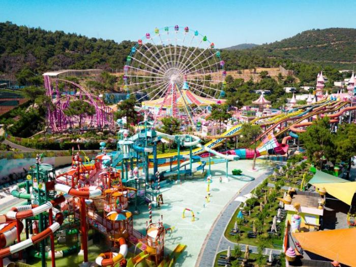 CANDYTOWN LUNA PARK е мястото за неверятно забавления по време на Вашия престой. Паркът представлява комплекс от различни забавления за всички възрасти. Разбира се, не трябва да пропускат и Лунапарка с 9 различни атракции включително виенско колело високо 17 метра, както и детска въртележка, картинг, лабиринт с лазер игри, детско влакче на ужасите и 8D кино. Има мини клуб за деца между 4 и 7 годишна възраст, който може да предложи на малките посетители детски фитнес, арт занимания, мини диско, игрална площадка, детска йога и безброй други забавления. За малко по-големите (на възраст между 8 и 12 години) в макси клуб се предлага търсене на съкровища, оригами, баскетбол, волейбол, водно поло, сумо игри, рали, футбол и още други. Тийнейджърите в хотела могат да посетят предвидения за тях клуб, в който играят тенис на маса, футбол, дартс, търсене на съкровища, игрална зала (playstation 5 и компютърни игри), бинго, баскетбол, кино, уроци и много други. Дино парк с 12 динозаври в реални размери. Най-новите атракциони са тематичния парк Candyland и виенското колело. Работно време в периода 01.05-15.10 от 20.00 до 23:00 (може да варират спрямо метеорологичните условия).