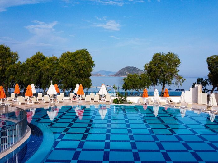 Намира се на 53 км от летище Бодрум, на 18 км от центъра на Бодрум, на центъра на Тургутрейс, на брега на морето. Построен 1990 г., на обща площ от 6.000 m². Реновиран 2025 г.