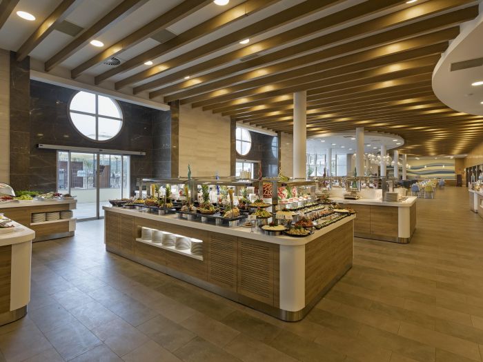 Основен ресторант, 4 а-ла-карт ресторанта (рибен, турски, италиански, азиатски, – срещу заплащане / с предварителна резервация, съгласно концепцията на хотела), сладкарница, 7 бара, 3 открити и 1 закрит басейн, 4 водни пързалки, СПА център, магазини, 1 конферентна зала, паркинг.