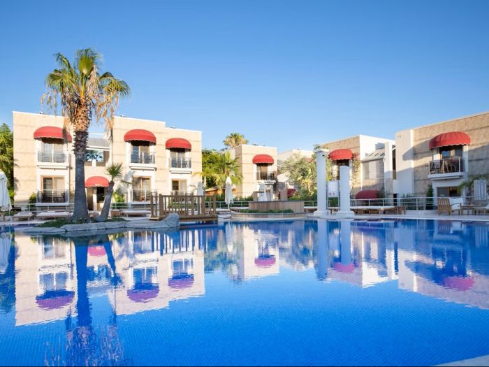 Намира се на 36 км от летище Бодрум, на 1 км от центъра на Бодрум, на 1 км от центъра на Гюмбет, на втора линия. Построен 2006 г., на обща площ от 4000 м².