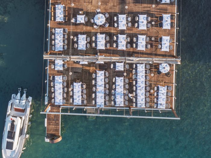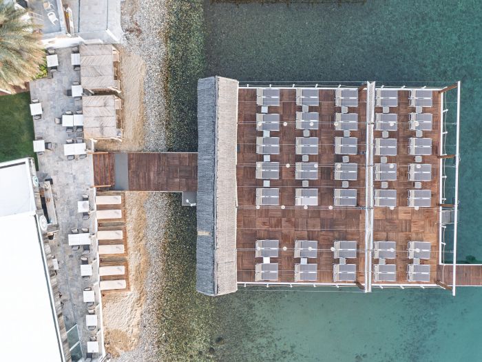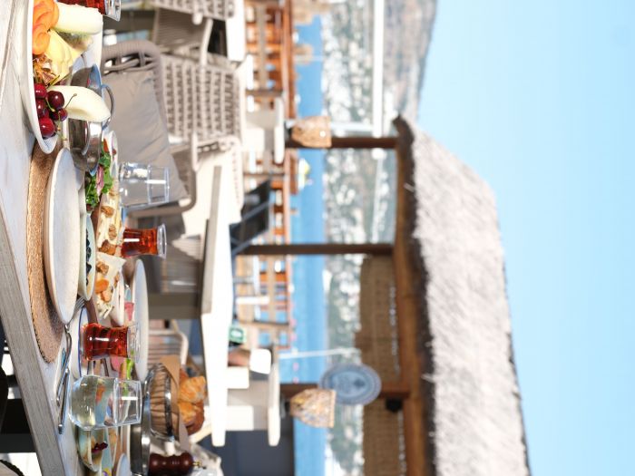 Намира се на 44 км от летище Бодрум, на 18 км от центъра на Бодрум,в района на Тюркбюкю, на брега на морето. Реновиран 2025 г.