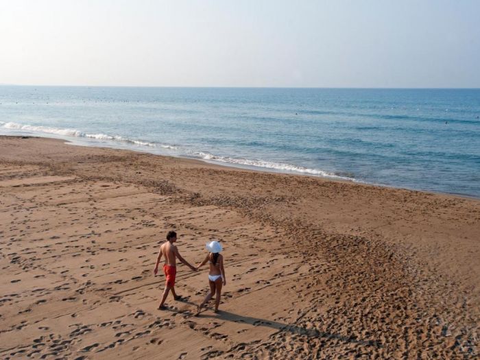 Собствен пясъчен плаж. Чадъри, шезлонги и матраци - безплатно. Плажни хавлии - срещу депозит.