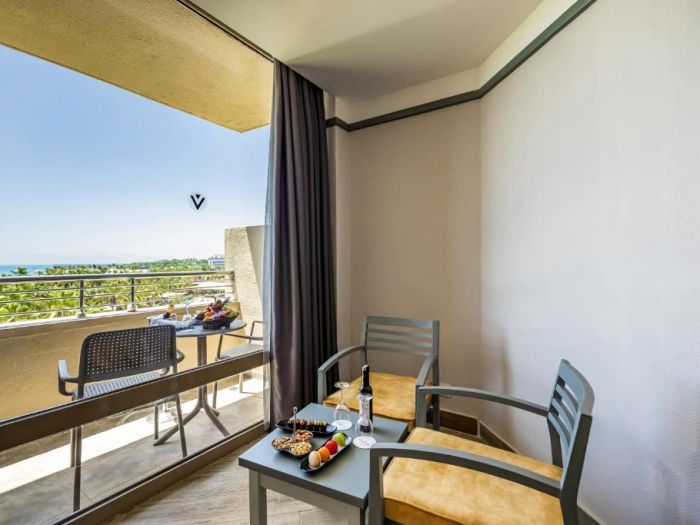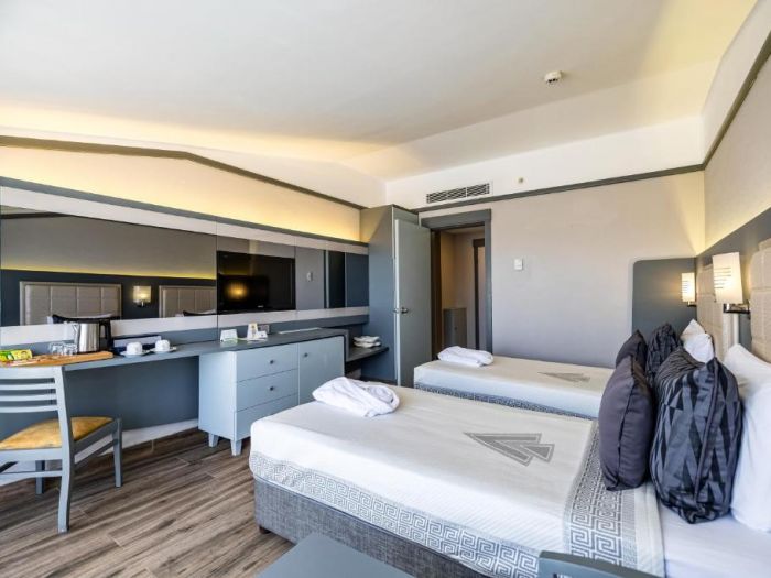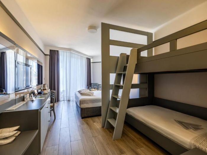 312 Standard Room (изглед суша или страничен изглед море - 24 м2), 4 Handicapped Room (пригодени за хора с ограничена подвижност - 24 м2), 45 Family BunkBed Room (двойно и двуетажно легло, изглед градина - 29 м2), 35 Family Room (2 спални, двойно и две единични легла - 42 м2), 56 Suite Room (две спални, двойно и две единични легла, хол, изглед море – 56 м2).