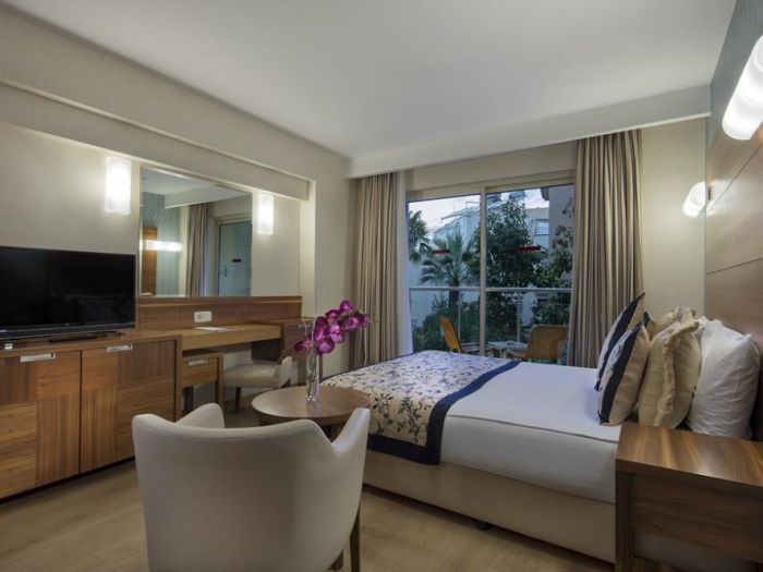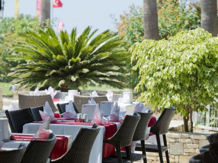 Хотелът разполага с външен и вътрешен плувни басейни, основен ресторант, 2 а-ла-карт ресторанта(османски и средиземноморски), 2 бара, СПА център, сауна, парна баня, турска баня, фитнес, аеробика, анимация, водни спортове, WI-FI.
