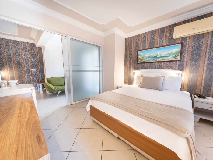 Плаж на 1,5 км от хотела. Безплатен трансфер 2 пъти на ден до плажа (10:00-11:00 отиване и връщане 16:30-17:30). Заплаща се 400 лири на човек за вход на плажа и включва шезлонги и чадъри. На плажа не се предоставят кърпи.