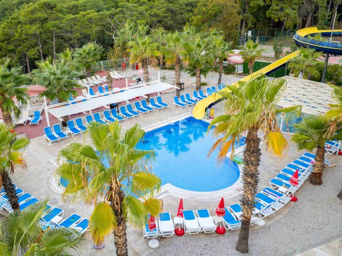 Хотелът се намира на 60 км от летище Даламан, на 45 км от Саклъкент и Далян, на 5 км от центъра на Фетие, на 5 км от световноизвестния плаж Олудениз. Построен е на 400 м надморска височина върху обща площ от 16 000 м2.