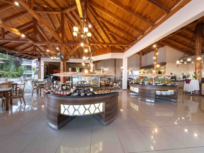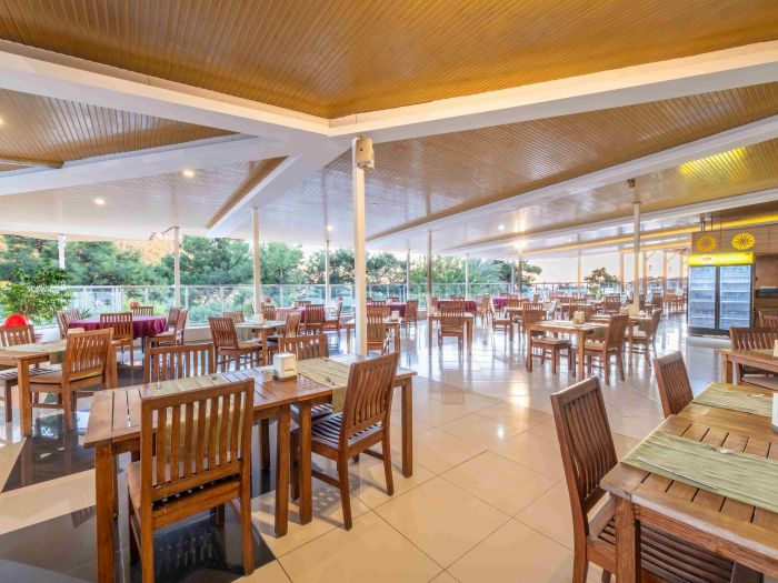 Основен ресторант, 1 а- ла- карт ресторант, 3 бара, 2 големи басейна, 2 детски басейна (единия с водна пързалка), детска площадка , детски клуб , анимация.