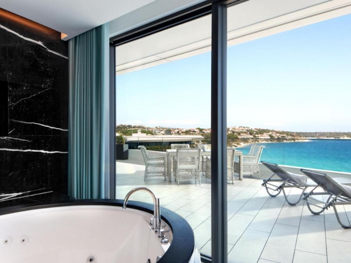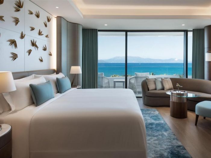 Хотелът разполага със 105 стаи, всички оборудвани с климатик, телевизор, телефон, баня с душ/вана, сешоар, тоалетни принадлежности, мини бар, сет за чай/кафе, сейф, балкон, Wi-Fi интернет. Почти всички стаи са с изглед морето. Почистване на стаите - всеки ден, смяна на спалното бельо и кърпите - 2 пъти в седмицата.