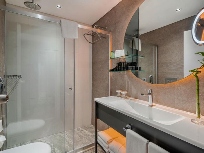 Всички стаи са оборудвани с климатик, телевизор, телефон, баня с душ/вана, сешоар, халат и чехли, сет за чай/кафе, минибар (безплатен), сейф (безплатен).