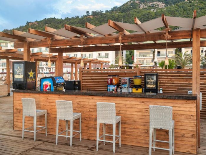 Основен ресторант, 2 а-ла-карт ресторанта (морски и интернационален - срещу заплащане с предварителна резервация), снек бар, гьозлеме, сладкарница, 5 бара, диско бар, кафетерия, 2 открити и 1 закрит басейн, водни пързалки, СПА център, магазини, паркинг.