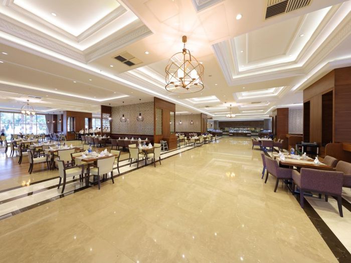 Основен ресторант, 5 а-ла-карт ресторанта (рибен, италиански, източна кухня, веган – срещу заплащане, с предварителна резервация), 2 снек ресторанта, сладкарница, гьозлеме, 7 бара, витамин бар, кафетерия, 4 открити и 1 закрит (отопляем) басейн, аквапарк, СПА център, дискотека, магазини, 5 конферентни зали.