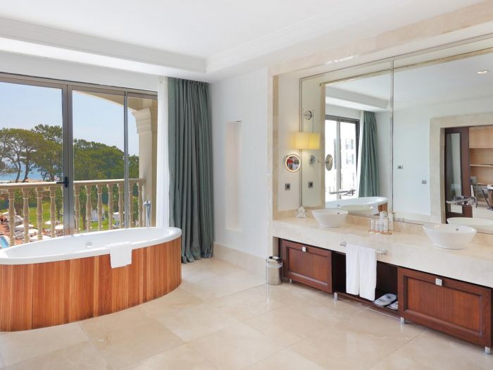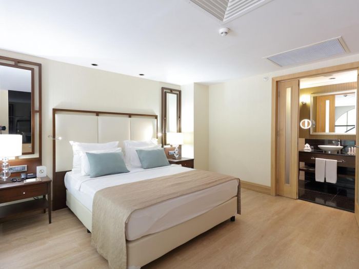 Хотелът разполага с общо 423 стаи, разположени в 5-етажна основна сградa Main building, от които 295 Deluxe Standard Rooms (изглед планина или страничен изглед море – 36 м2), 38 Deluxe Standard Large Rooms (изглед планина или страничен изглед море, 42-46 м2), 73 Duplex Family Room (на два етажа, 2 спални, 2 бани – 65 м2), 2 Duplex Family Executive (на два етажа, 2 спални, 2 бани – 79 м2), 6 Honeymoon Suite (спалн, кът за сядане, джакузи, 52-67 м2), 4 Honeymoon Suite Executive (спалня, кът за сядане, гардеробна, джакузи, изглед море – 79 м2), 1 Prestige Suite (на два етажа, 2 спални, кът за сядане, гардеробна, 2 бани, вана, джакузи – 149 м2), 2 Platinum Duplex Suite (на два етажа, 2 спални, 2 бани, директен достъп към общ басейн, страничен изглед към море – 79 м2), 2 Platinum Duplex Suite Executive (два етажа, 3 спални, всекидневна, кът за сядане и слънчеви бани, 3 бани, 2 вани, страничен изглед море – 165 м2).