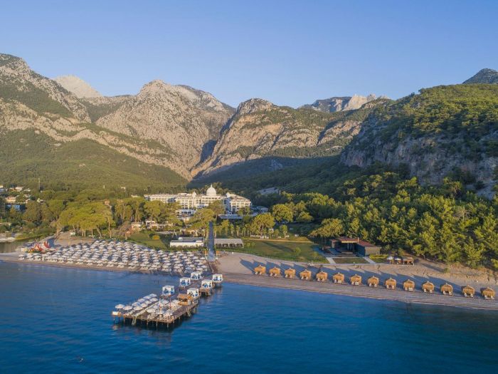Намира се на 40 км от летище Анталия, на 28 км от центъра на Анталия, на 18 км от центъра на Кемер, на брега на морето. Построен 2014 г., на обща площ от 90 000 м2.