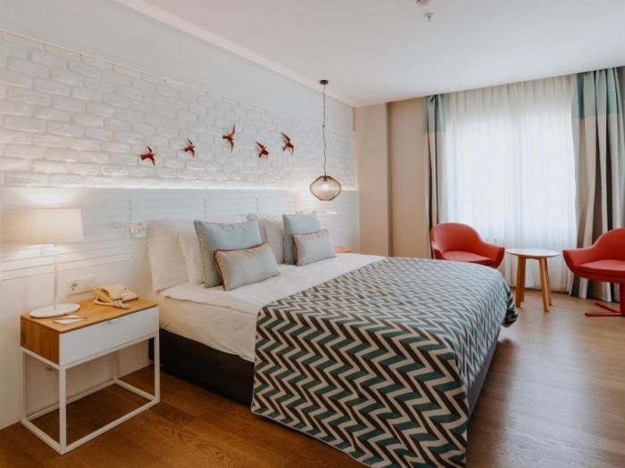 Разполага общо с 360 стаи, от които: Superior Land View Room (изглед градина - 24м2), Superior No Balcony Room (без балкон - 24 – 28,5м2), Superior Side Sea View Room (страничен изглед море – 24м2), Superior Dbl 4 Side Sea View Room (спалня с единично легло и диван, страничен изглед море - ׅ28,5м2), Superior Dbl 4 Land View Room (спалня с единично легло и диван, изглед градина - 28,5м2), Superior Disabled Land View Rooms (2 without Balcony) (изглед градина, без балкон - 24 – 28,5м2), Deluxe Suite with Jacuzzi & Direct Sea view Room (спално помещение, трапезария с диван, неспресо машина – 73-86м2), Penthouse Suite with Land View (разположени са в горната част на сградата, спално помещение, трапезария, гардеробна, 2 балкона – 56m2), Family Suite Land View Room ( 2 спални помещения с изглед градина – 83м2), Family Suite Sea View Room (спалня, трапезария с диван, балкон, 2 бани, изглед море – 58м2), Deluxe Direct Sea View Room ( спалня с единично легло, изглед море – 30м2).