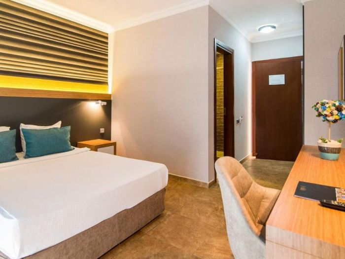 Състои се от една 4-етажна сграда: 127 standard room (21 м2), 3 двустайни family room (хол, спалня с врата,35 м2). Всички стаи са оборудвани с климатик, телевизор, телефон, баня с душ/вана, сешоар, минибар.