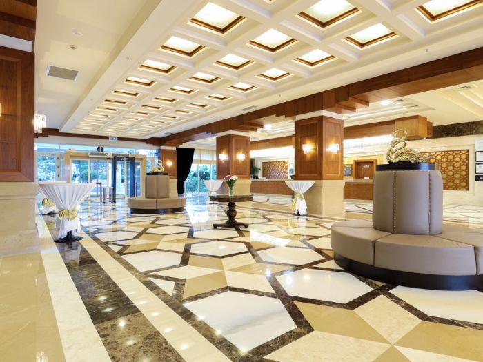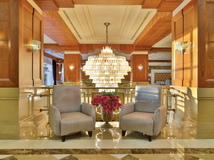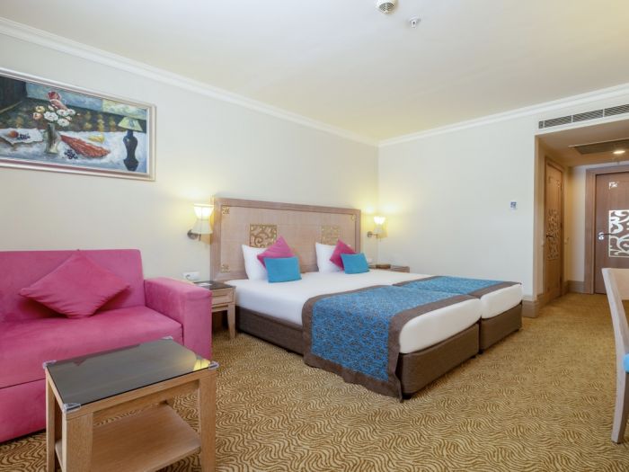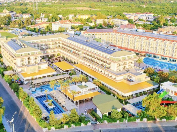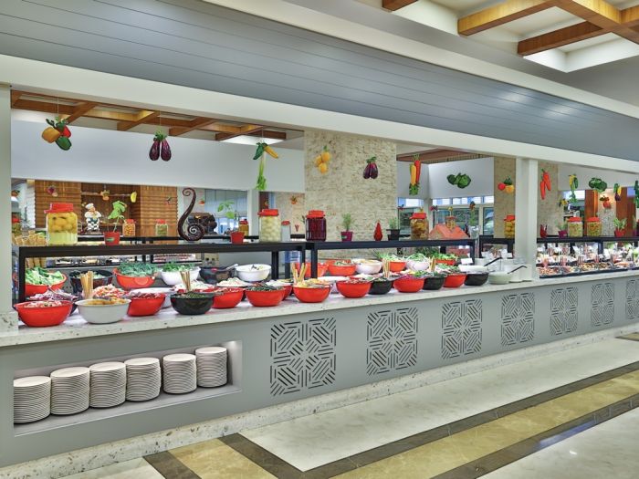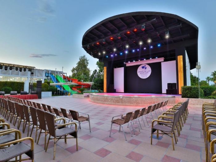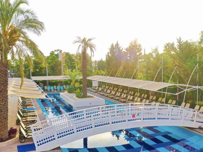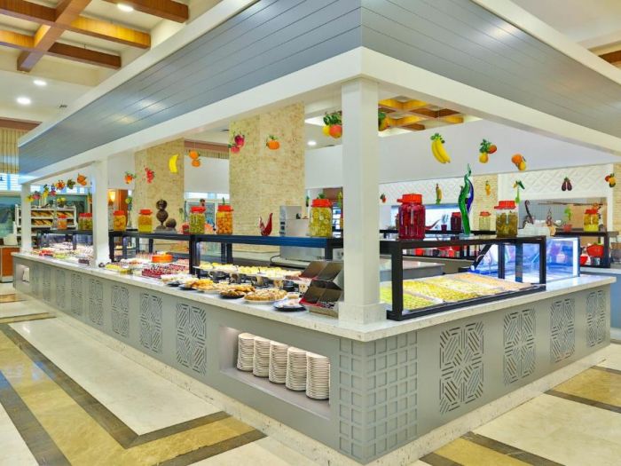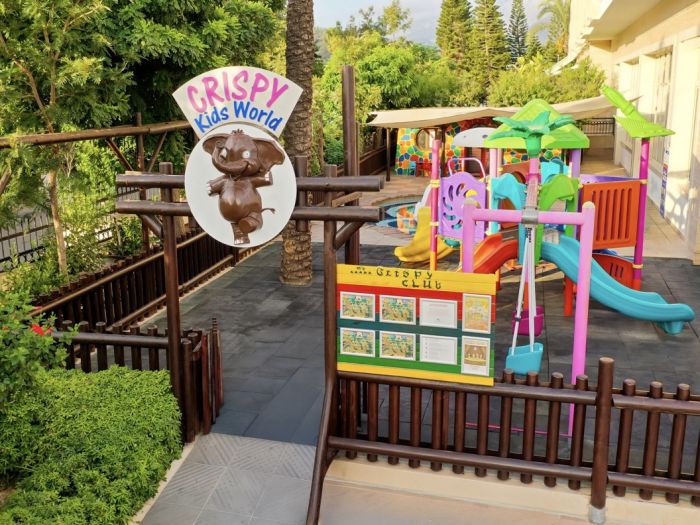 Основен ресторант, а - ла - карт ресторант (с предварителна резервация), 4 бара, 3 открити и 2 закрити басейна, водни пързалки, магазини, СПА център, дискотека, кино, конферентни зали, паркинг. За децата: Детска площадка, мини клуб (4-12 г.), 2 детски басейна – външен и вътрешен, водни пързалки, анимация. Безплатни услуги: Турска баня, сауна, джакузи, фитнес, дартс, тенис на маса, тенис корт (с предварителна резервация), баскетбол, аеробика, водна гимнастика, кино, жива музика, анимация, интернет. Платени услуги: Масаж, фризьор, търговски център, билярд, боулинг, джаги, интернет кафе (с предварителна резервация), видеоигри, химическо чистене, лекар, водни спортове, наем на топки и ракети за тенис, осветление за тенис корта.