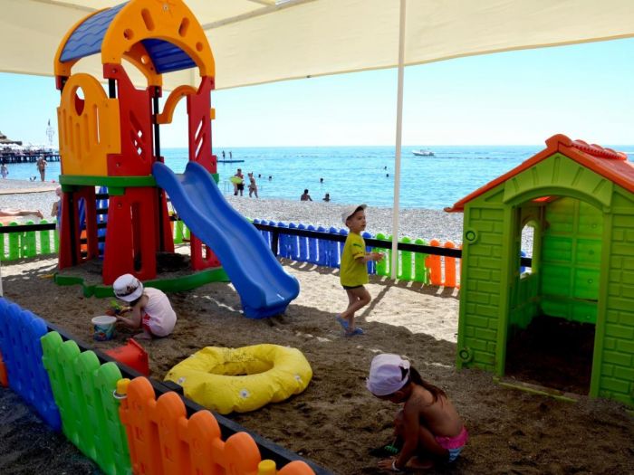 За децата: Детски бюфет, 2 детски басейна, водни пързалки, детска площадка, мини клуб (4- 12г), мини диско, детска анимация, столче за хранене, детска количка и детегледачка – срещу заплащане.