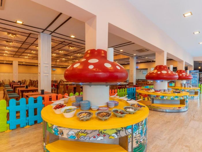 Основен ресторант, 5 а-ла-карт ресторанта (рибен, турски, италиански, далекоизточен, стек - срещу заплащане, с предварителна резервация), снек бар, сладкарница, 5 бара, диско бар, 3 открити басейна, водни пързалки, амфитеатър, лунапарк, СПА център, дискотека, магазини.