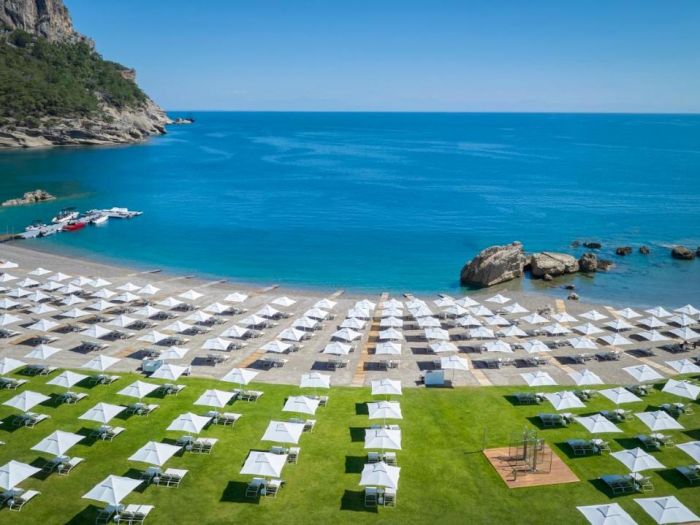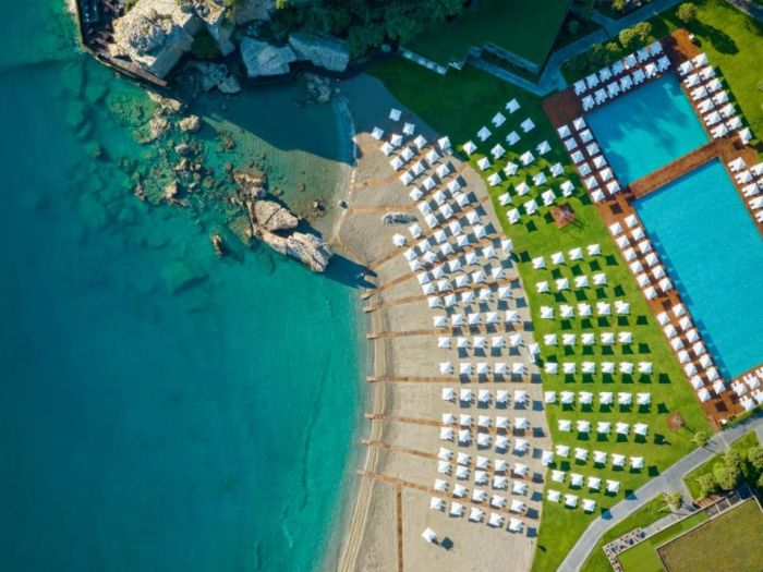 3 собствени плажа (2 със ситен чакъл и 1с кей). Чадъри, шезлонги на плажа и при басейна - безплатни.