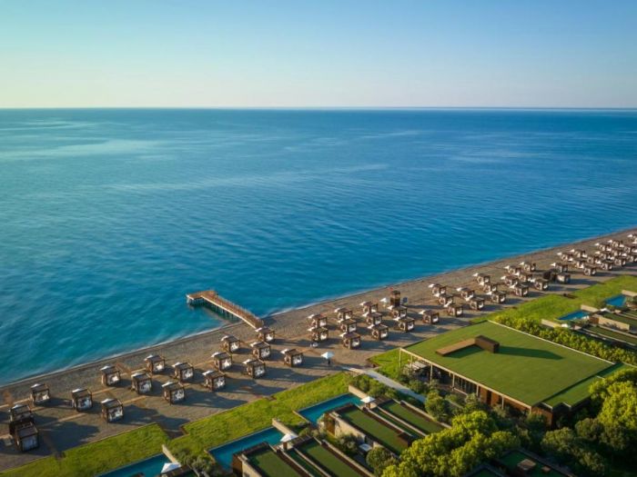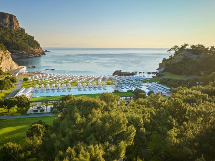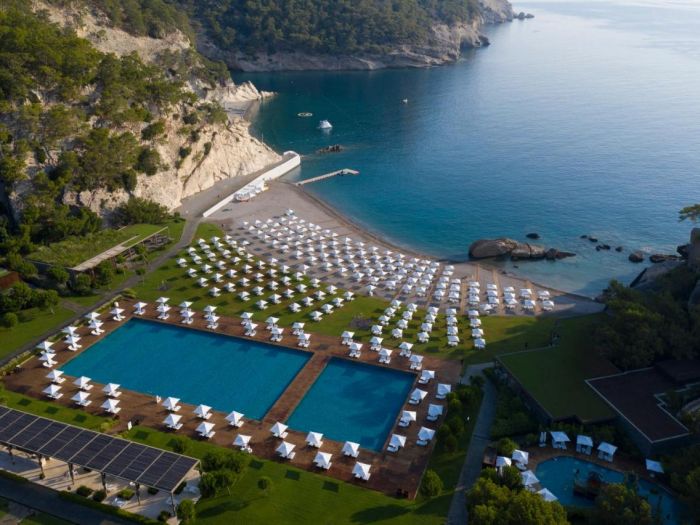 Намира се на 60 км. от летище Анталия, на 6 км. от Кемер, на 400 м. от Кириш, на брега на морето. Построен през 2014 г., с обща площ 160 000 м².