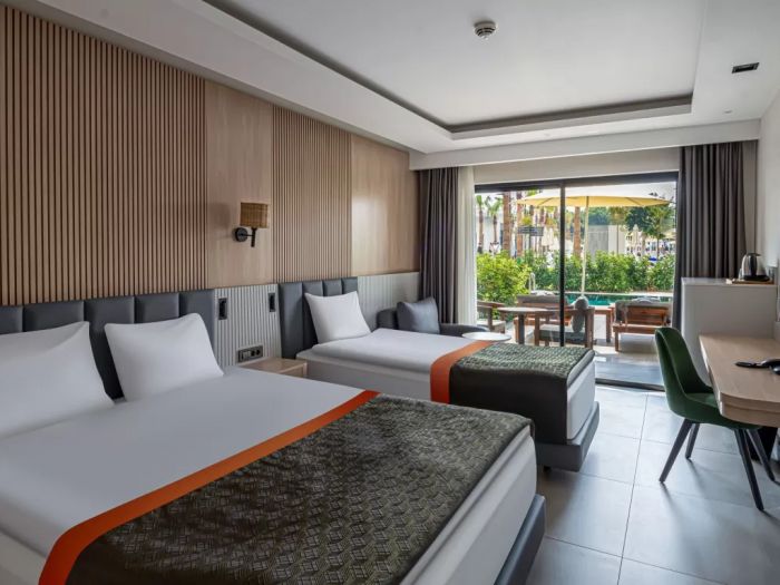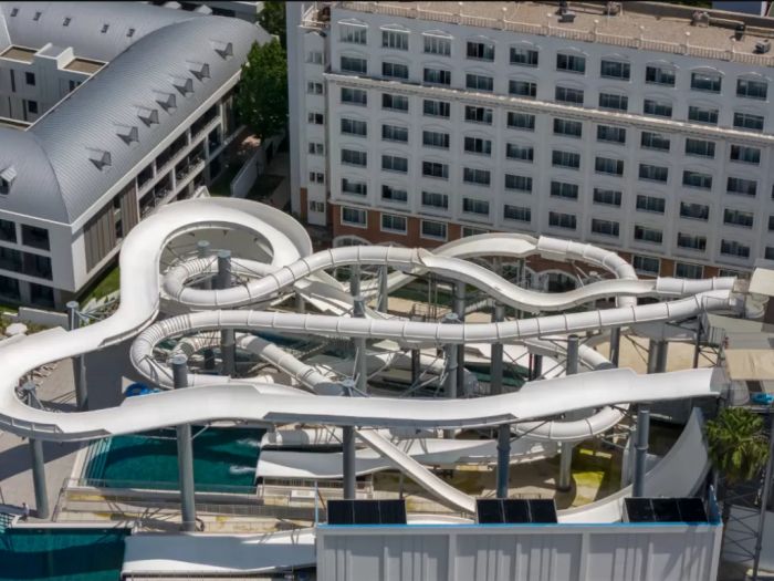 Хотелът разполага с основен ресторант, 3 а-ла-карт ресторант(рибен, турски и италиански, срещу доплащане), 6 бара, 3 басейна и 1 вътрешен, водни пързалки, СПА център, магазини. За деца: 2 външни и 1 вътрешен басейн, Пеги клуб(4-14г.), бъги, детегледач, детско меню, анимация за деца.
