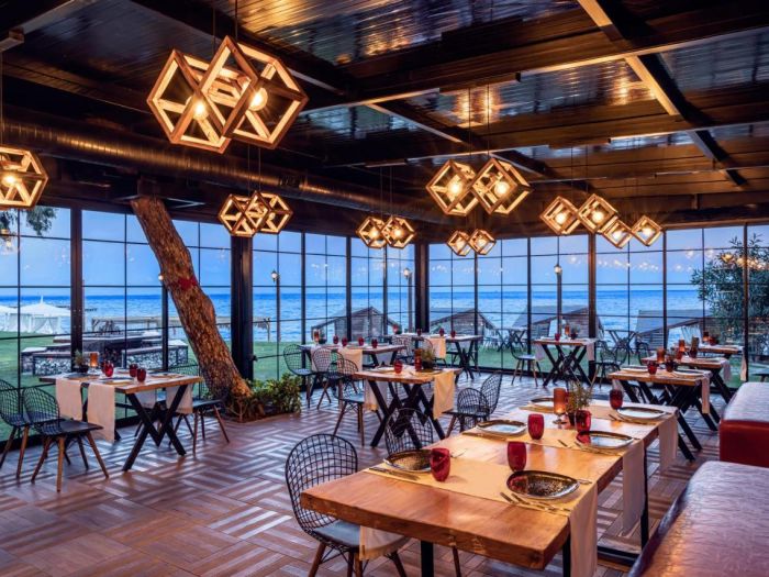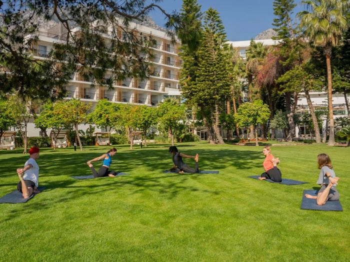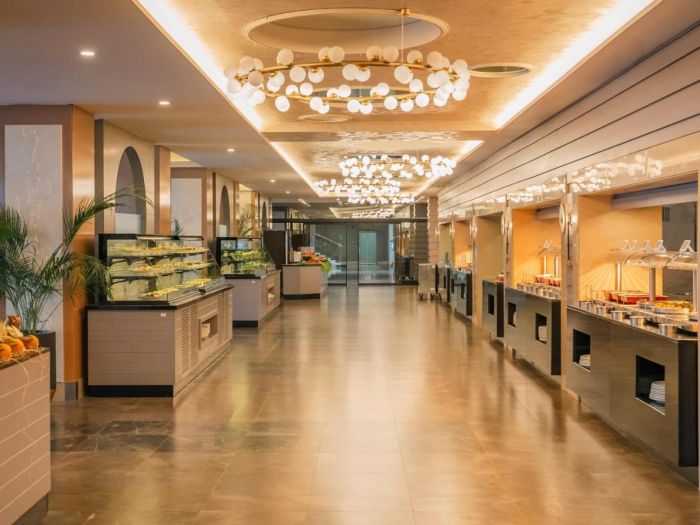 Основен ресторант, 4 а-ла-карт ресторанта(с предварителна резервация), 4 бара, 2 конферентни зали, 1 открит басейн, 1 закрит басейн, 3 водни пързалки, 2 тенис корта, център за таласотерапия, салон за красота, СПА център За децата: мини клуб (4-12 г.), детегледачка (доп.заплащане), детска площадка. Безплатни услуги: турска баня, фитнес център, анимация, закрит басейн Платени услуги: фризьор, масаж, салон за красота Плаж: Собствен чакълест. Чадъри, шезлонги, матраци и плажни кърпи - безплатни.