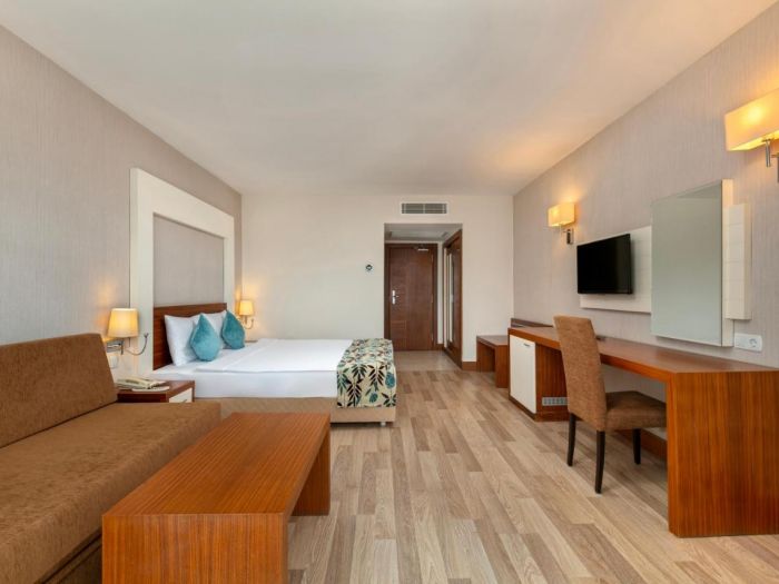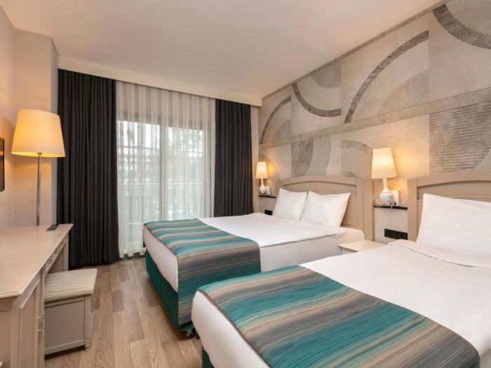 Основен ресторант, 2 снек ресторанта, сладкарница, 1 а-ла-карт ресторант (италианска кухня, с предварителна резервация - с доплащане), 3 бара, дискотека (с доплащане), основен открит басейн, вътрешен басейн, аквапарк с 5 пързалки за възрастни и 4 пързалки за деца, СПА център, фитнес, хамам, сауна, тенис на корт, магазини, WI-FI, външен паркинг.