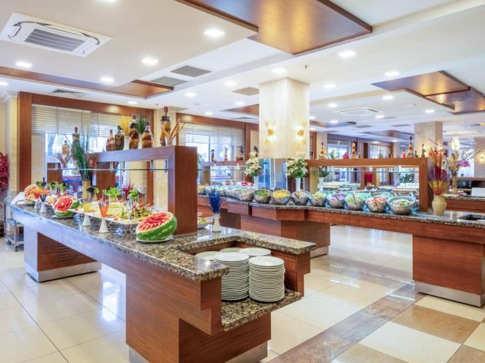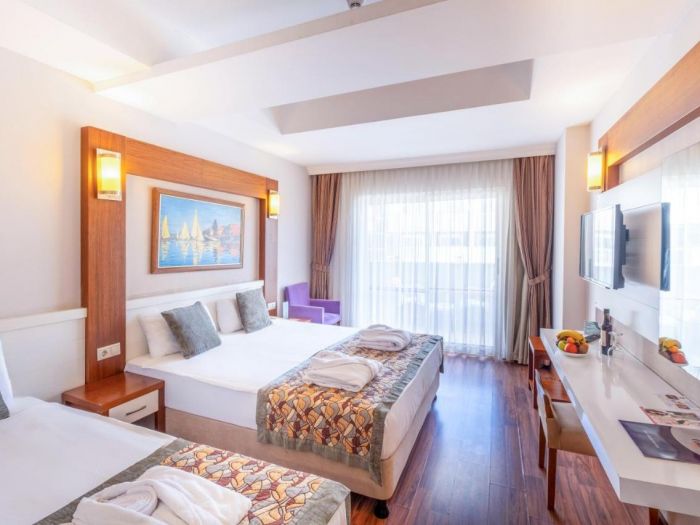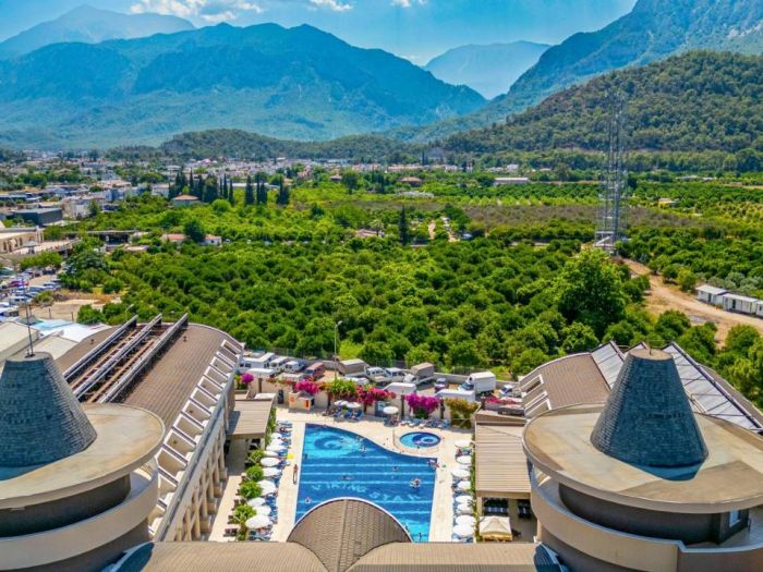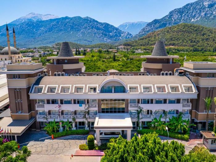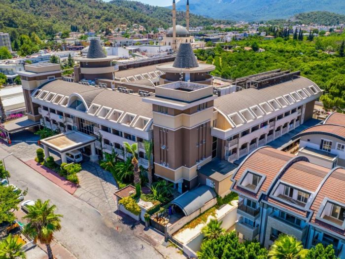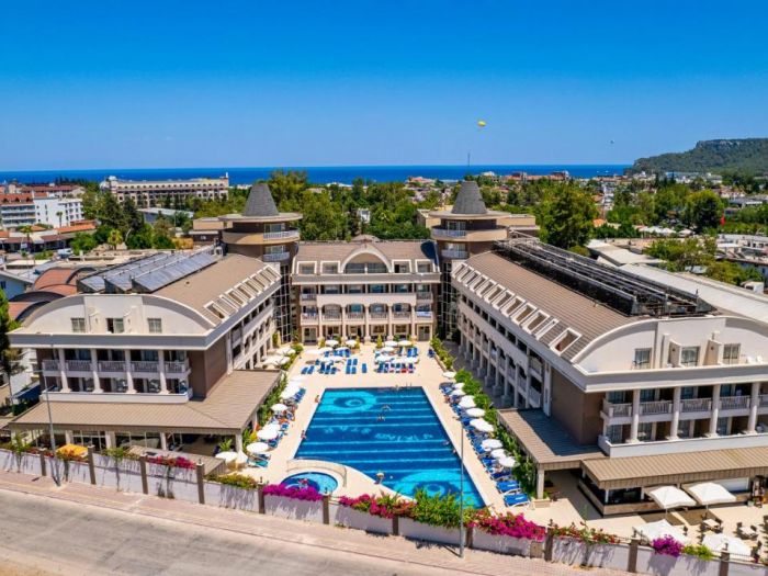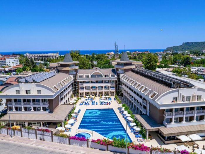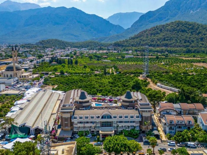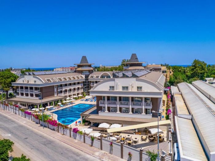 Намира се на 600 м от брега на морето, на 45 км от центъра и на 55 км от летището в Анталия. Хотела заема площ от 6 000 м2.