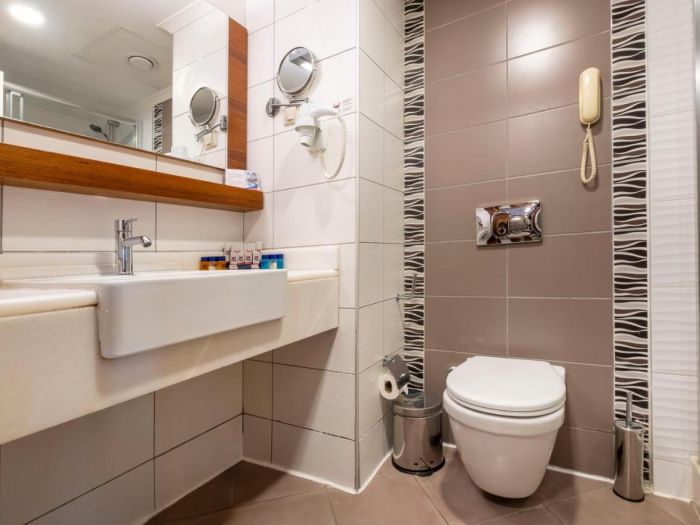 Душ, сешоар, централен климатик, телевизор, сейф (срещу заплащане), мини-бар, килим, балкон, ежедневно почистване на стаите, смяна на спалното бельо три пъти седмично, румсервиз (срещу заплащане)
