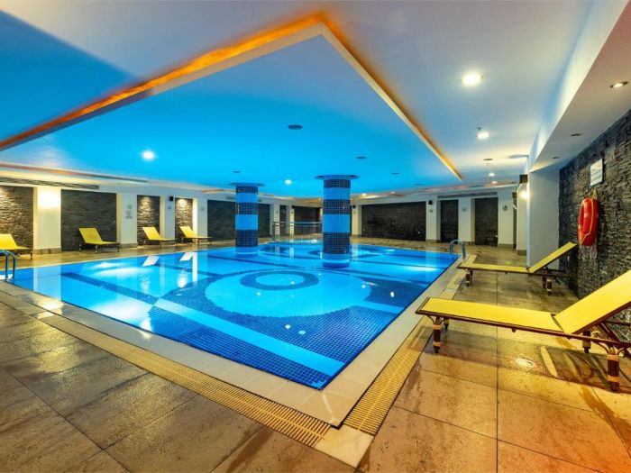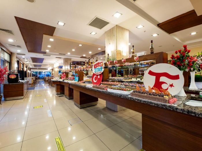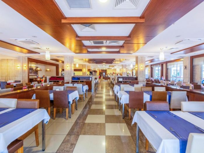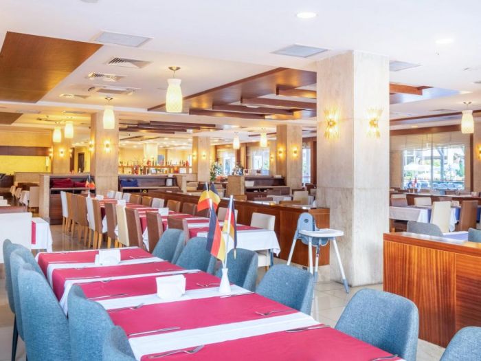 Основен ресторант, 2 открити басейна (350 и 97 кв.м), 2 закрити басейна, анимация, амфитеатър, дискотека (безплатно), обмен на валута, зала с телевизия, зала с игри (безплатно), магазини, конферентна зала (250 човека), паркинг, турска баня, сауна, фитнес център, дартс, тенис на маса, безжичен интернет в лобито на хотела