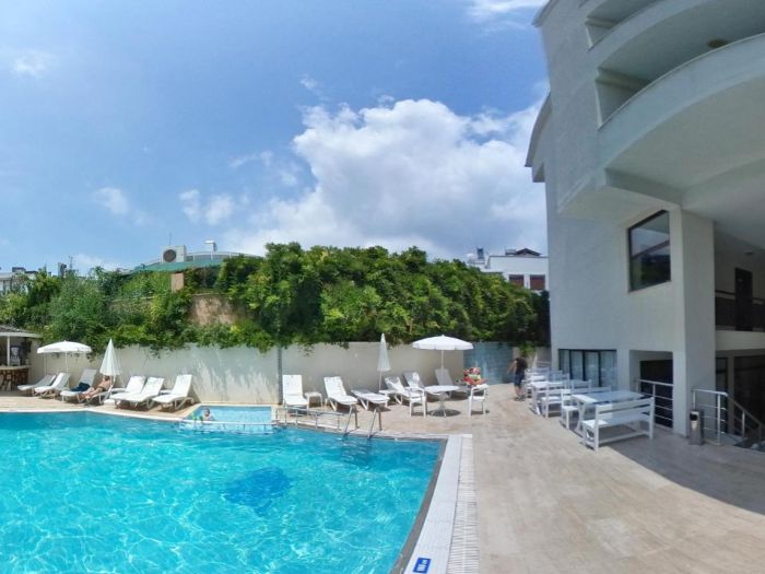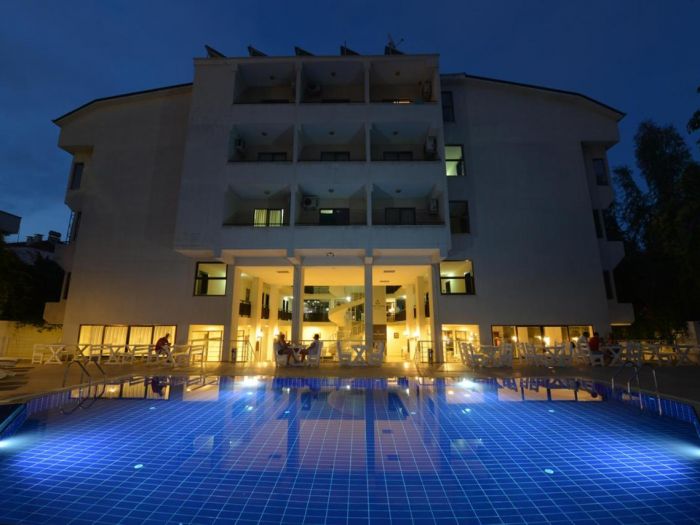 Намира се в района на Кемер, в близост. до центъра на Кемер, на 45км. от центъра на Анталия, на 55км. от летището на Анталия, на брега на морето със собствен плаж-чакъл, шезлонзи и чадъри-безплатно.