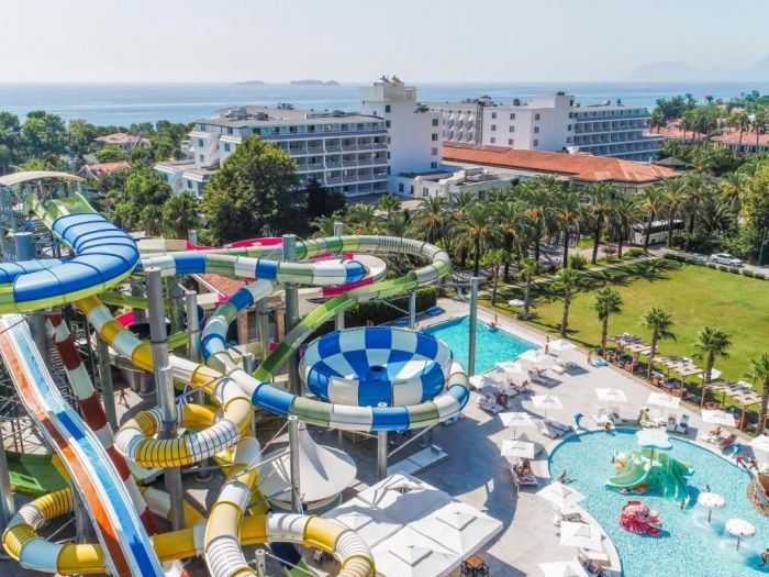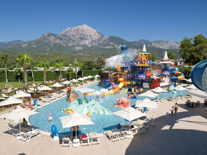 Хотелът се намира на самия бряг на морето, в Гьойнюк, на 6 км. от Кемер, на 45 км. от летище Анталия. Обща площ на хотела – 60 000 м2.