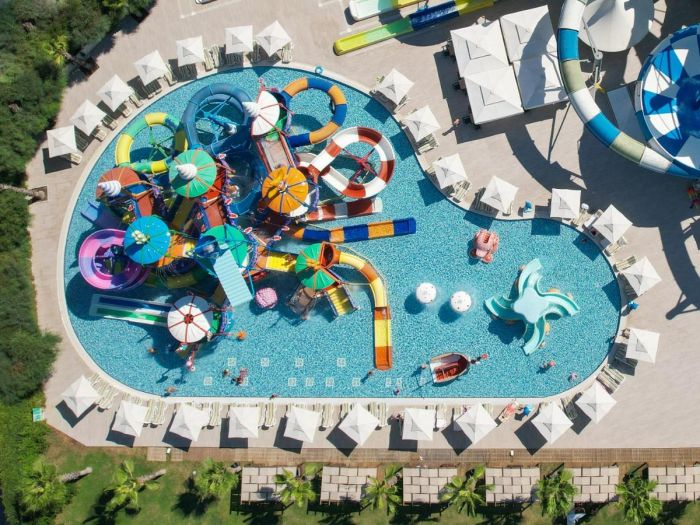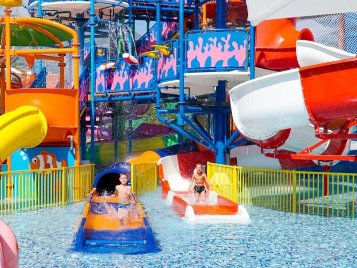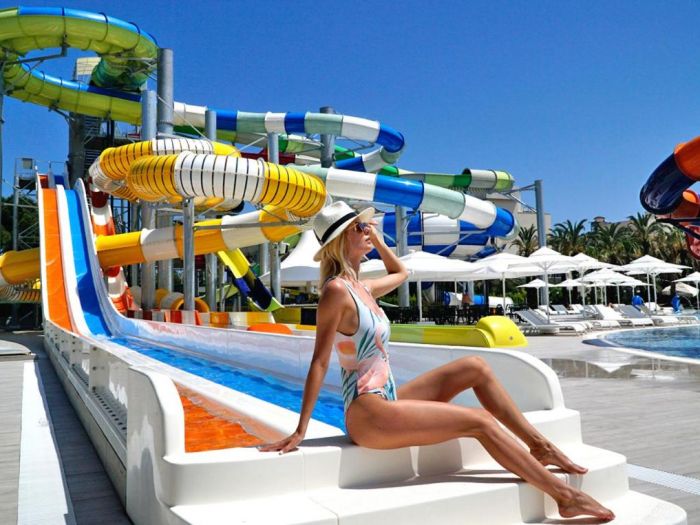Основен ресторант,3 а ла карт ресторанта, лоби бар, бар на басейна,бар на плажа, 2 открити и един закрит басейн, аквапарк, 3 тенис корта, амфитеатър, търговски център, конферентна зала, Спа-център, паркинг.