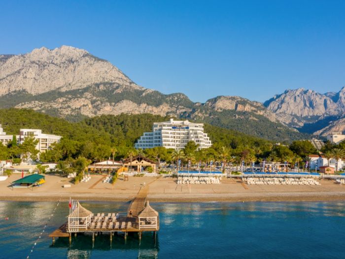 Намира се на 45 км. от летище Анталия, на 35 км. от центъра на Анталия, на 8 км. от центъра на Кемер, на брега на морето. Обща площ на хотела 43.000 м2.
