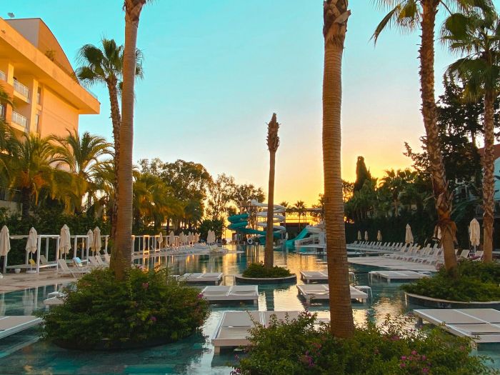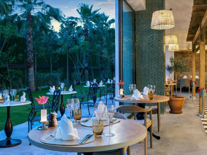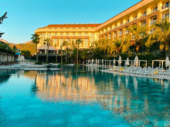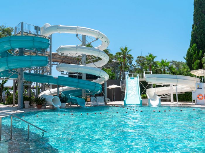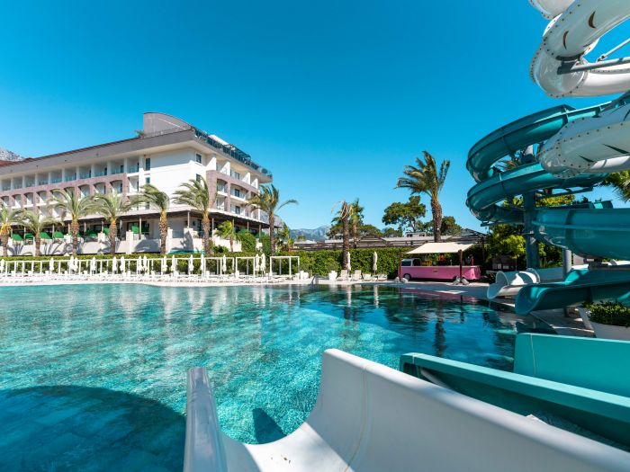 Основен ресторант, 5 а-ла-карт ресторанта (рибен, турски, италиански, барбекю, стек – 1 безплатно посещение при минимум 7 нощувки), сладкарница, 7 бара, открит и закрит (отопляем) басейн, закрит (отопляем) басейн с джакузи, аквапарк, амфитеатър, СПА център, дискотека, магазини, конферентна зала.