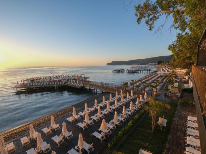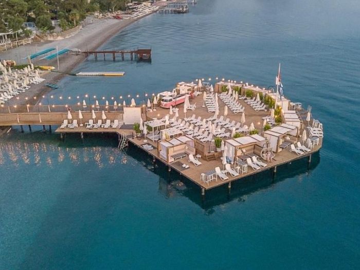 Намира се на 57 км от летище Анталия, на 40 км от центъра на Анталия, на 500 м от центъра на Кемер, на брега на морето. Построен 2018 г., на обща площ от 17 000 м2.