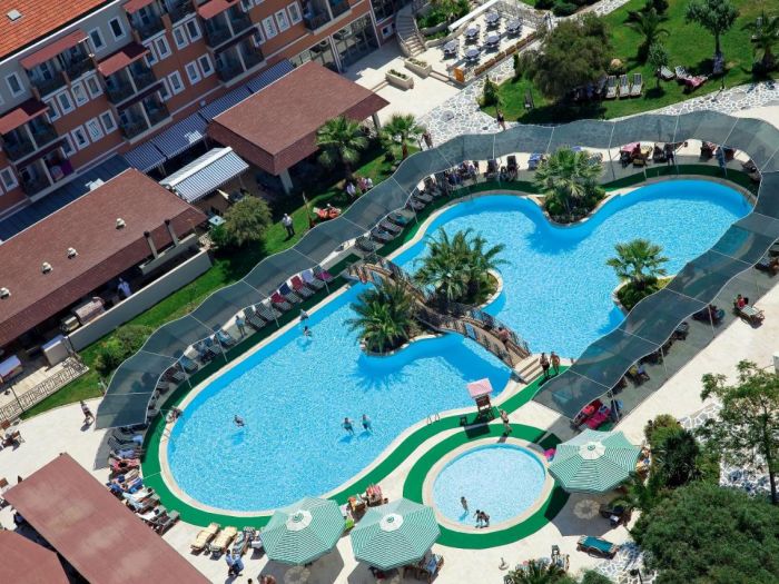Основeн ресторант, турски ресторант (само за обяд), 3 а-ла-карт ресторанта - рибен и италиански (безплатно посещение при престой 7 нощувки, с предварителна резервация, в периода от 15.06 до 15.09), стек ресторант (с предварителна резервация, срещу заплащане), 6 бара (лоби бар 24/7), витаминен бар (платен), сладкарница, 3 открити басейна, 1 закрит отпляем басейн (с изключение на периода от 01.06 до 01.10.), водни пързалки, СПА център, амфитеатър, дискотека, магазини, паркинг.