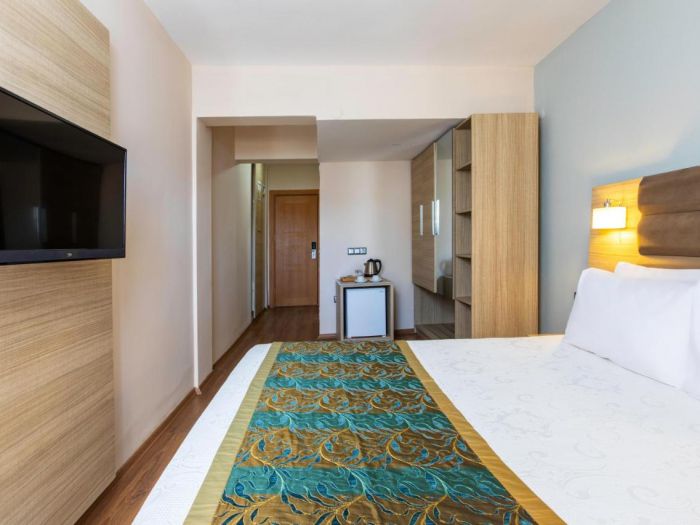 Хотелът разполага със 176 стаи, от които 88 стандартни стаи (спалня и диван, 22 кв.м) и 88 супериор стаи с изглед градина (22 кв.м) в 2 двуетажни сгради. Всички стаи са оборудвани с климатик, телевизор, телефон, баня с душ/вана, сешоар, мини бар, сейф, балкон или тераса. Почистване на стаите - всеки ден, смяна на спалното бельо и кърпите 2 пъти седмично.